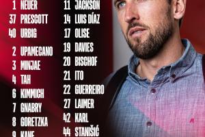 拜仁公布战皇马首回合名单:凯恩领衔,奥利塞、穆西亚拉在列