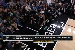 体育资讯04月07日讯 马刺队记:文班左肋骨挫伤,下半场提前退赛>>