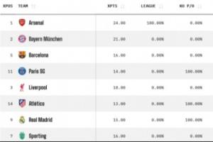 最新欧冠夺冠概率:
