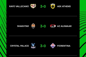 欧协联1/4决赛首回合:水晶宫3-0佛罗伦萨,美因茨2-0斯特拉斯堡