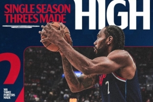 本场比赛过后,伦纳德单赛季已经命中149记三分,创个人生涯新纪录(此前纪录为2016-17赛季的147记)。