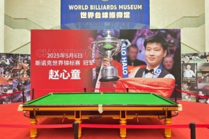 体育资讯3月25日讯 据“世界斯诺克巡回赛”官博消息,赵心童在2025年的斯诺克世界锦标赛夺冠球桌已陈列在江西玉山的世界台球博物馆。