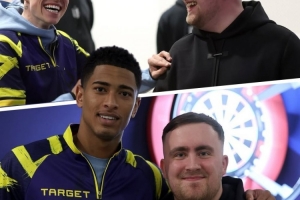 体育资讯3月26日讯 飞镖神童卢克·利特勒访问英格兰队,鼓励球员成为世界冠军。