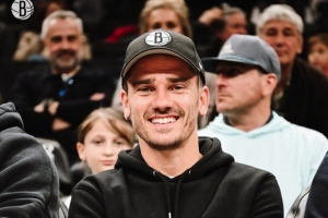 法国球星格列兹曼来到现场,观看这场NBA比赛,为效力于篮网的法国球员诺兰·特拉奥雷加油助威。